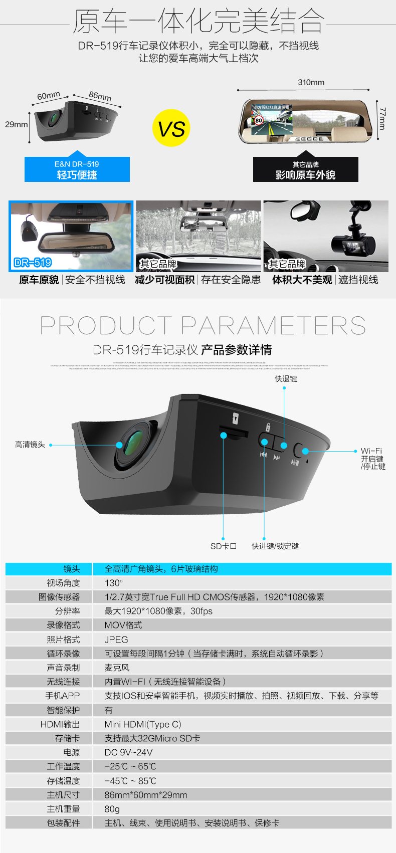 特色: 車輛一體化設計,安裝隱蔽